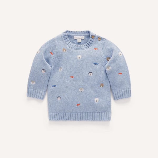 Keep warm and cosy in our Snowy Embroidered Jumper. Featuring an all over winter inspired embroidery with ribbed trims to keep out chills. Made from our organic cotton wool blend, pair this jumper with track pants or leggings for a sweet outfit.